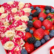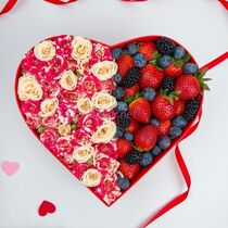Թփային վարդերի նուրբ համադրություն և թարմ հատապտուղներ՝ ելակ, հապալաս և մոշ, տեղադրված սրտաձև գեղեցիկ տուփի մեջ 💝 Սա նվեր է, որը խոսում է առանց բառերի ✨ Ստացողը, անկասկած, կգնահատի այն ըստ արժանվույն 💖 Սիրեք և ուրախացրեք ձեր հարազատներին 🌷🍓
